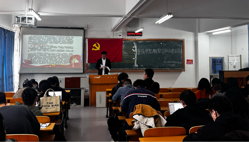 会议期间,吴月同志结合本院教师思想和工作实际,围绕艺术教育领域的人才培养路径展开解读。他指出,音乐教育作为美育核心载体,需将理论学习成果转化为育人实效,在专业教学中融入文化自信培育,以“立德树人”为根本,助力学生成长为兼具艺术素养与家国情怀的复合型人才,呼应科教兴国战略对高素质人才培养的需求。
