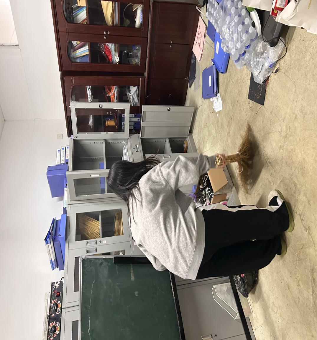 活动伊始,负责人便对各项任务进行了细致分工,确保高效有序推进。马凯文、高瑞博等四位同学负责从二教内搬出物资;李秋贤、魏雨暄等五位同学承担主力搬运工作,因物资量大且需转运至图书馆六楼,大家先将所有物品集中堆放至二教一楼,待去六教打扫卫生的小组返回后再分批转运;唐宝珍、徐星棋等五位同学则负责利用电动车运输小件物品,大件物资则由男生们合力用车辆运送,所有物资抵达图书馆一楼后,全体成员共同协作,将其搬运至六楼指定位置。