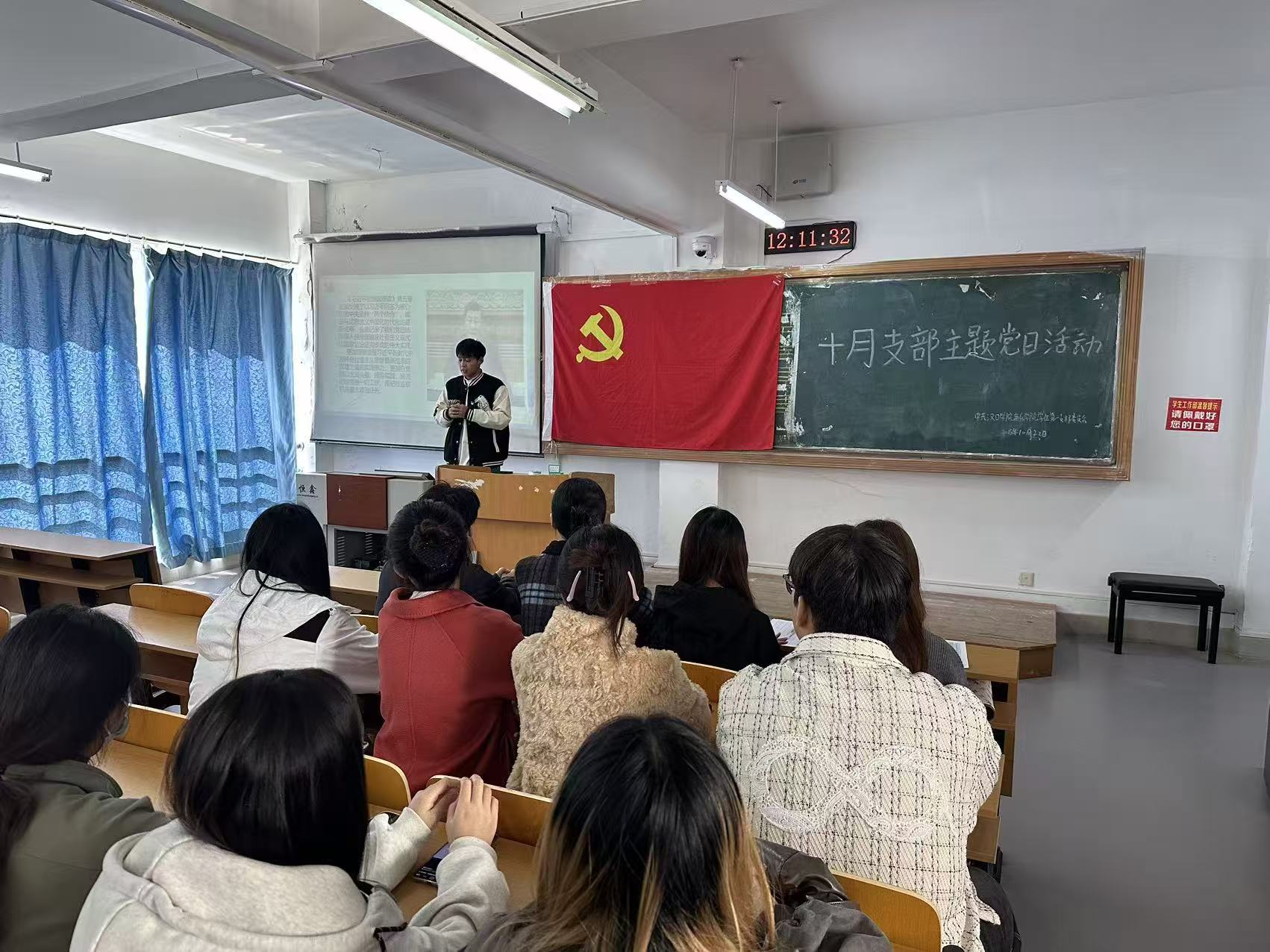 为筑牢红色基因,传承红色精神,进一步加强党员的思想政治教育,汉口学院音乐学院学生第一党支部于2025年10月22日中午12点在音乐楼二楼大教室开展了十月支部主题党日活动。全体党员、预备党员及入党积极分子共同参与了此次会议,会议由支部书记卢平同志主持。