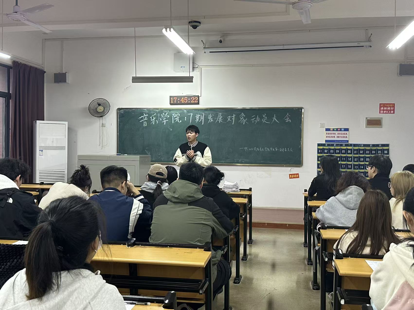 为了帮助发展对象们夯实思想根基,提升学习党的基本知识的主动性,音乐学院学生第一党支部于10月22日下午在二号教学楼2523教室召开第十七期发展对象培训班动员大会。参与此次会议的成员有:学生第一党支部书记卢平同志以及全体入党发展对象。会议由支部书记卢平同志主持。