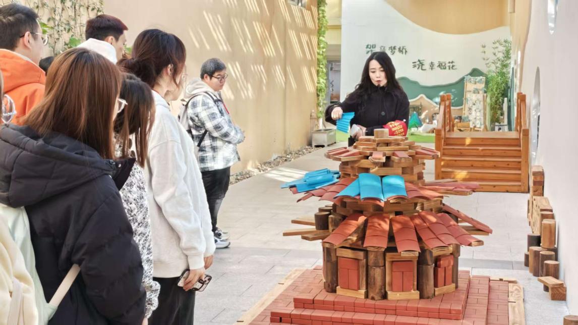 此次课外实践活动是双方合作逻辑的自然延伸。学前教育专业带头人吴海霞老师表示:“上次‘拾秋’活动,我们的学生主导设计了游戏,积累了实践经验。本次环创观摩,正是让他们回到理论源头,理解支撑这些游戏行为的环境基础与课程理念。”大桥中心幼儿园的肖园长也对这种“你来我往”的深度联动表示赞赏:“从高校的自然场地到幼儿园的教育现场,这种双向奔赴实现了资源共享的最大化,为园本课程注入了持续的创新活力。”