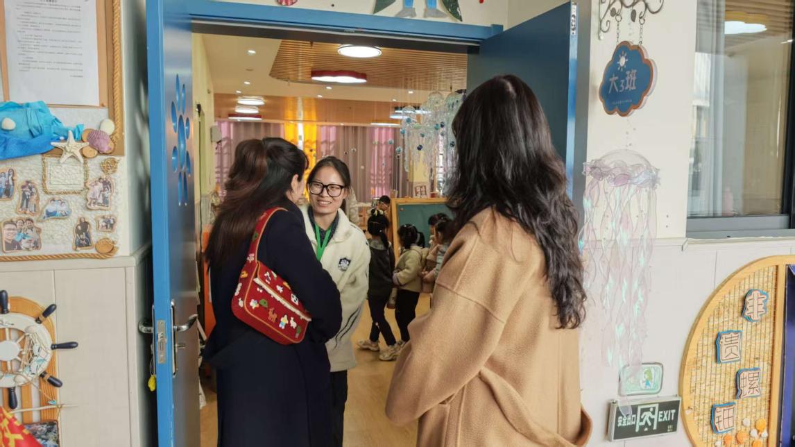 与上次活动一脉相承的是其中洋溢的温情与传承。此次行程中,老师带领同学们特意看望了在该园工作的19级赵航梅学姐。学姐结合自身经历,分享了从在校生到一线教师的成长路径,为学弟学妹们连接校园学习与职业发展提供了宝贵的桥梁,也进一步巩固了由高校、幼儿园及毕业生共同构成的“实践育人共同体”。