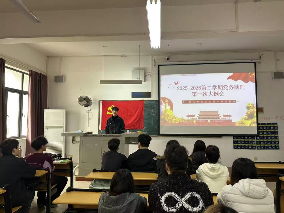 为夯实学院党建工作基础,强化党务助理队伍建设,音乐学院学生第一党支部于3月24日中午12点在二号教学楼2415教室召开2025-2026第二学期党务助理第一次工作例会。音乐学院学生第一党支部书记卢平、全体党务助理参加会议,会议由学生党务助理负责人王新焱主持。
